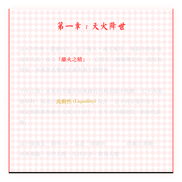 In the Year of the Fire Horse (2026), the Red Hare returns not as flesh and blood, but as immutable code.